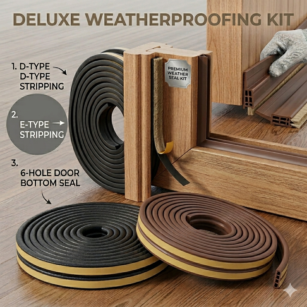 Seal your entire room with this all‑in‑one kit! Includes premium D & E type sealing strips and a flexible door bottom stopper to block dust, insects, and noise — keeping your AC air sealed inside.
