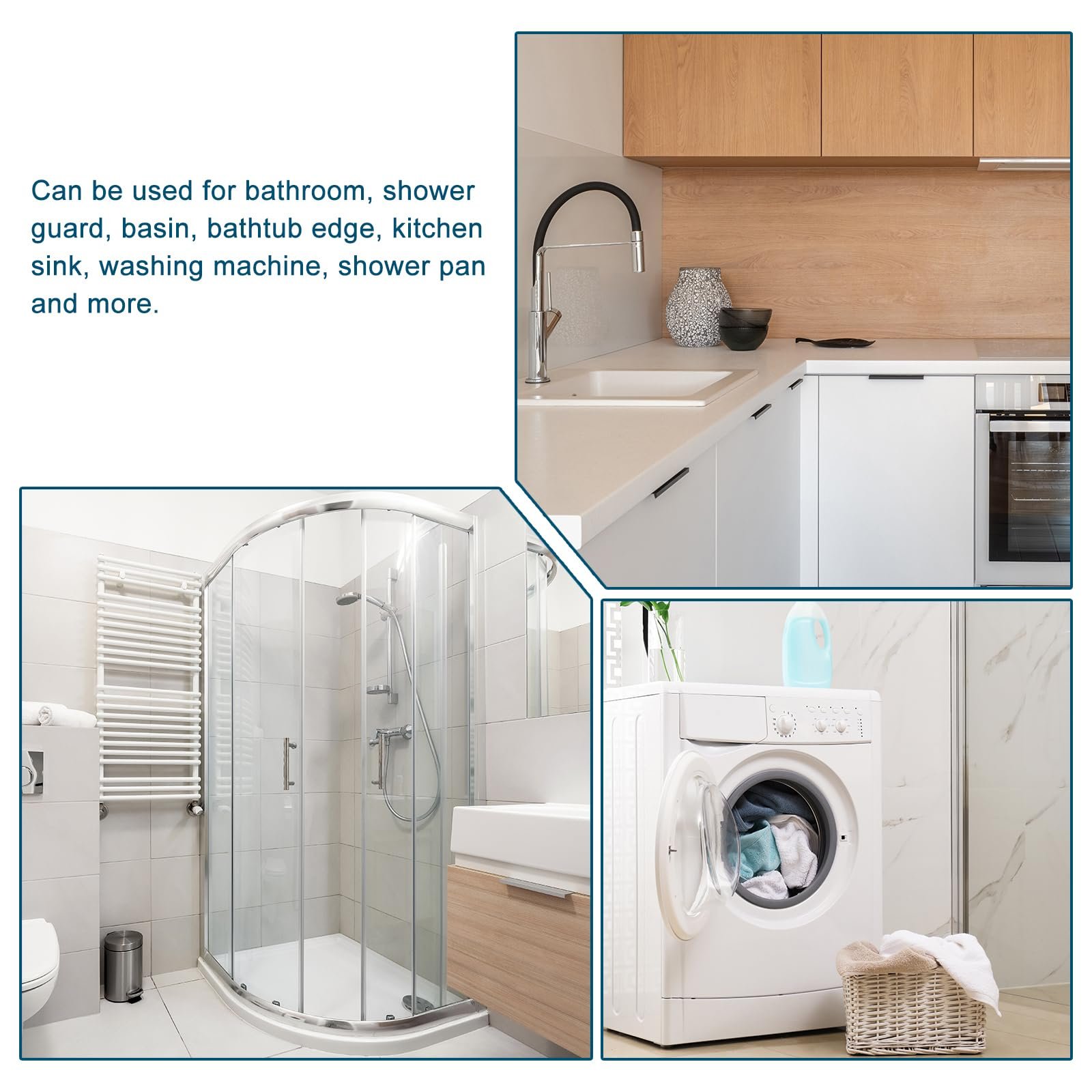 It can be applied on kitchen counters, bathroom sinks, and joint edges.